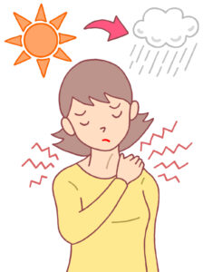 梅雨や台風の時期に体調を崩す方が多いのは、自律神経が気圧や温度差に敏感に反応するからです。都市部では冷暖房による温度差も大きな負担になります。